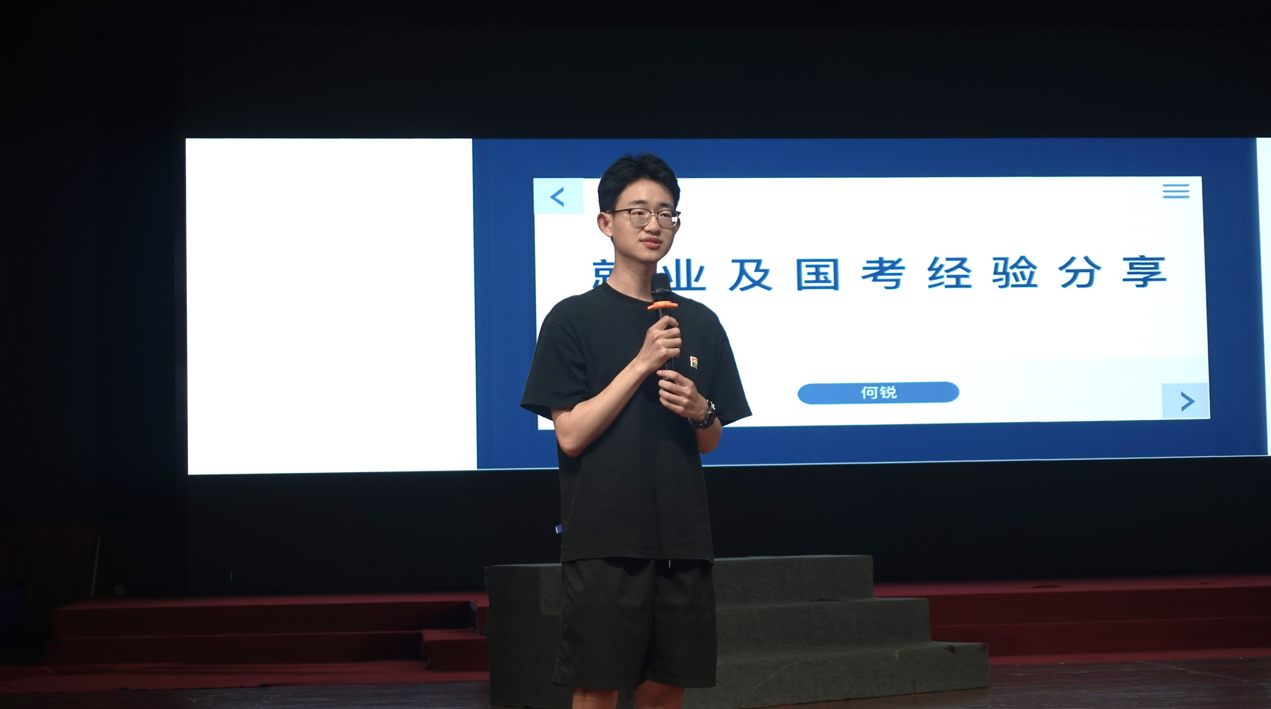 会议初,王觊婧就认清就业形势、合理规划、高质量充分就业等方面进行了讲话,通过对2023年就业情况分析,点明了当前就业的做法与困境。最后建议同学们做好就业的前提准备并抓住秋招黄金期,鼓励大家统筹好工作经验的积累与学历的提升发展。齐铁钧分享了考研及就业情况,对计通学院20级各班级平均绩点,排名分布及挂科情况多方面进行了分析。蒋月题对当前就业形势与企业需求进行了汇报,以“‘职’引青春,未来可期”为主题,开展职业人生讲堂,从企业的角度向同学们讲授求职择业中的注意事项技巧方法。詹敏就考研前期准备、初试、复试及个人学习时间线分享了自己的考研经验。何锐就多样选择及国考经历进行了考公经验分享。