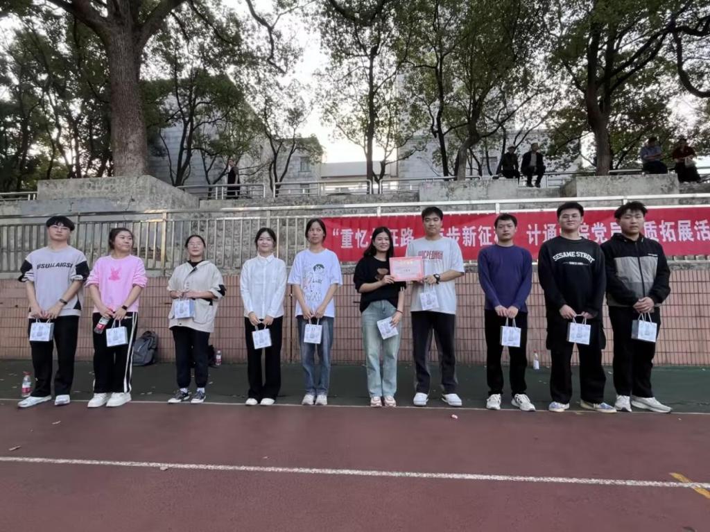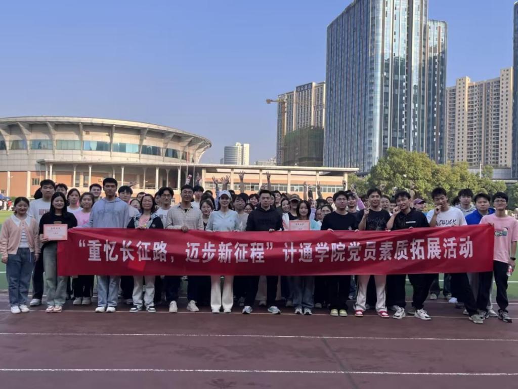11月12日下午,LETOU体育平台计通学院各学生党支部代表在金盆岭校区田径场开展了 “重忆长征路,迈步新征程” 为主题的党员素质拓展活动。活动以深入学习贯彻习近平新时代中国特色社会主义思想为指导,以增强党支部向心力与凝聚力为宗旨,旨在引领青年党员筑牢理想信念、扛起时代重任。计通学院党委副书记王觊婧出席本次活动,计通学院各学生党支部书记、各党支部代表及发展对象参加本次活动。