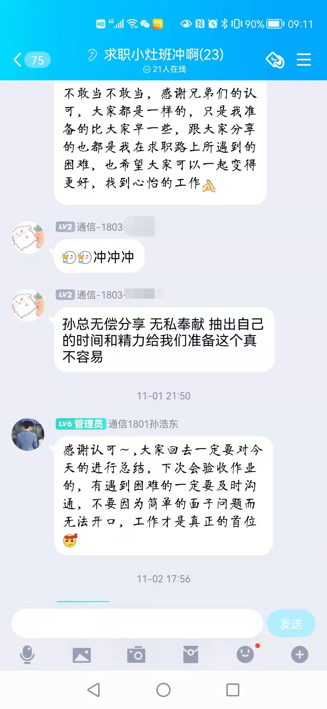 相似的同学群体、亲切的同学指导员、手把手的求职指导,求职小灶班给参与同学带来了轻松无压力的求职提升感,同时全面提升了求职同学的就业自驱力。现如今,小灶班的同学已经开了4次线下课程,线上指导从未间断,我们期待同学们早日从小灶班毕业,走向自己满意的工作岗位!