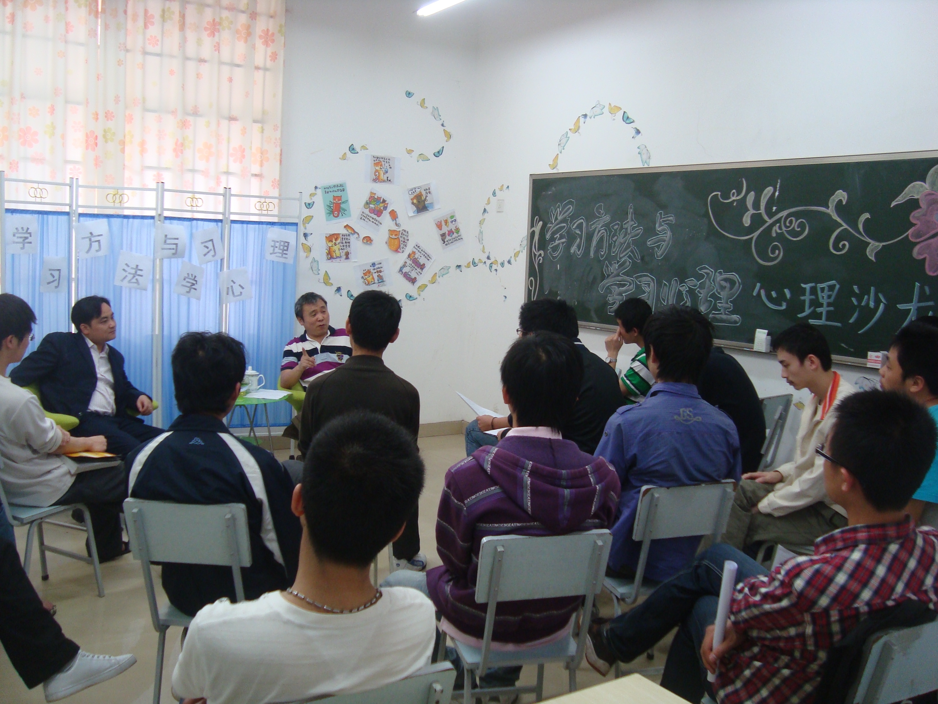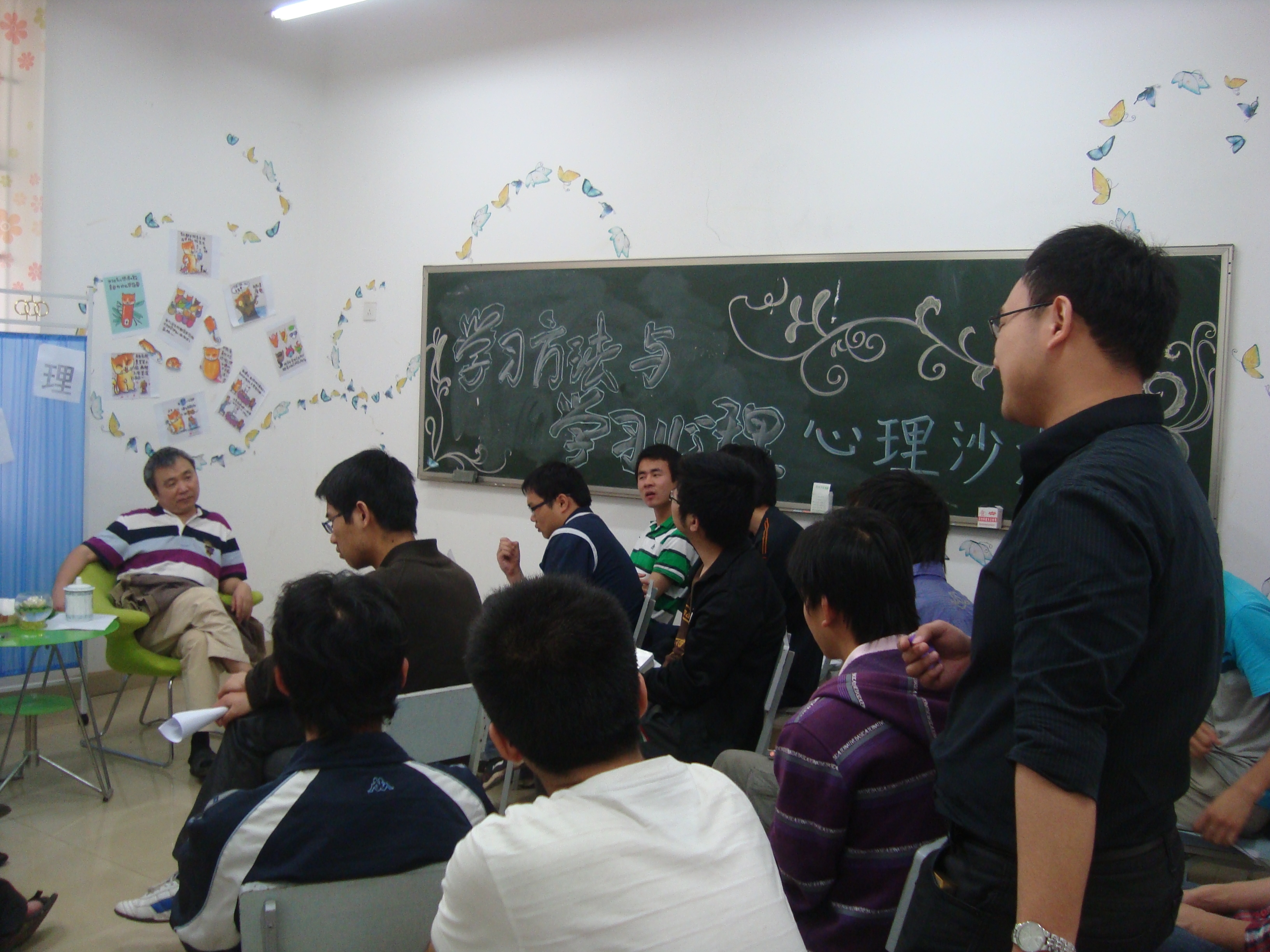2011年4月20日星期三下午14:30,计通学院在学生成长辅导室举办了学习方法与学习心理沙龙活动。沙龙活动由学院党委书记傅明教授主持,到场的有院心理辅导员伍接朝老师、学工办任志祥老师和各班自愿报名参加的成绩欠佳的20余名同学。