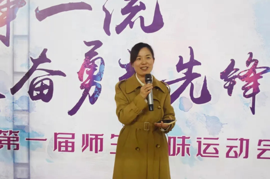 郭剑致开幕词,表示身体是每个人发展的基础,幸福来自健康,健康来自运动,希望每位教职工和学生都能在此次运动会中赛出快乐、赛出健康、赛出友谊。