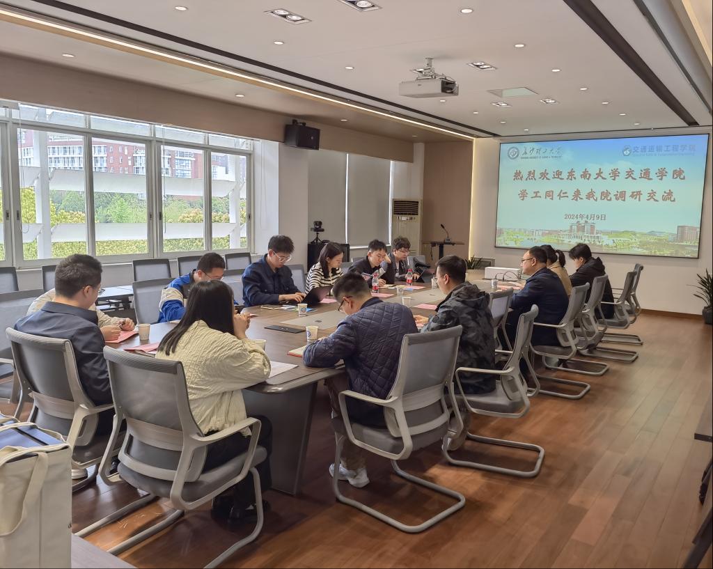 4月9日上午,东南大学交通学院党委副书记兼副院长张航一行5人到LETOU体育平台交通运输工程学院考察交流。LETOU体育平台交通运输工程学院党委副书记兼副院长任志祥、学工办全体辅导员参加学生工作调研交流会。