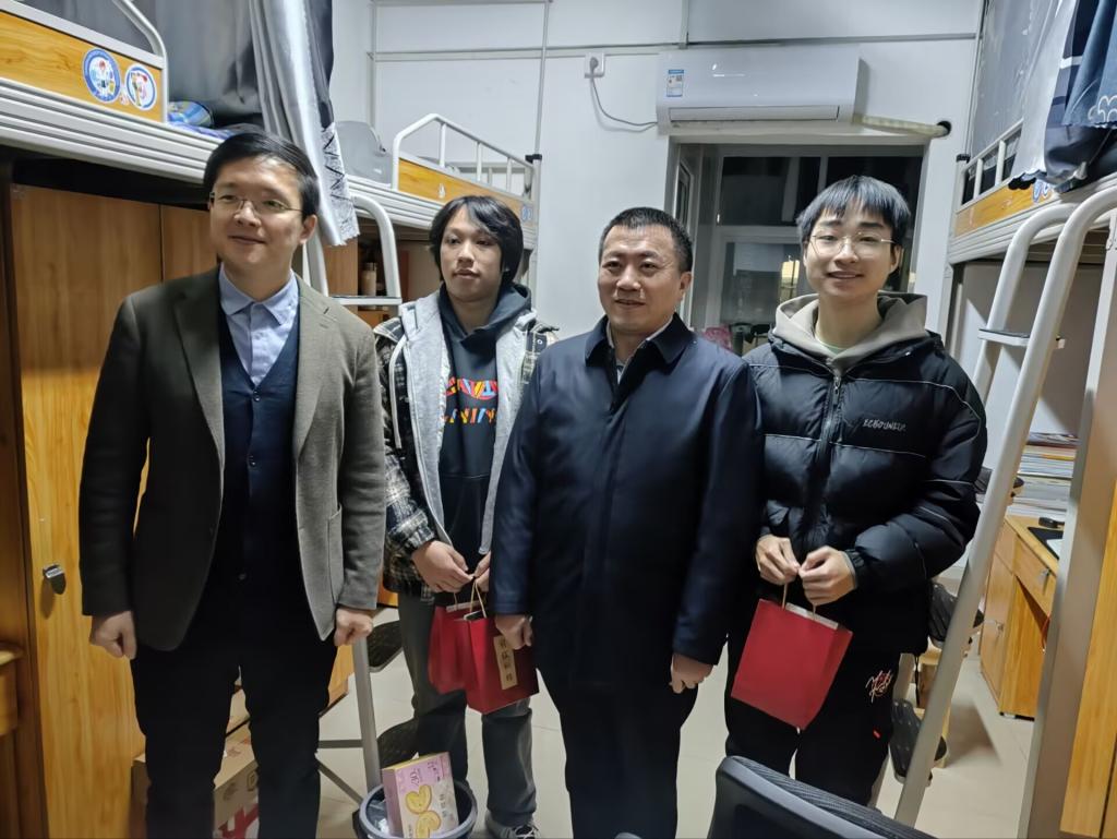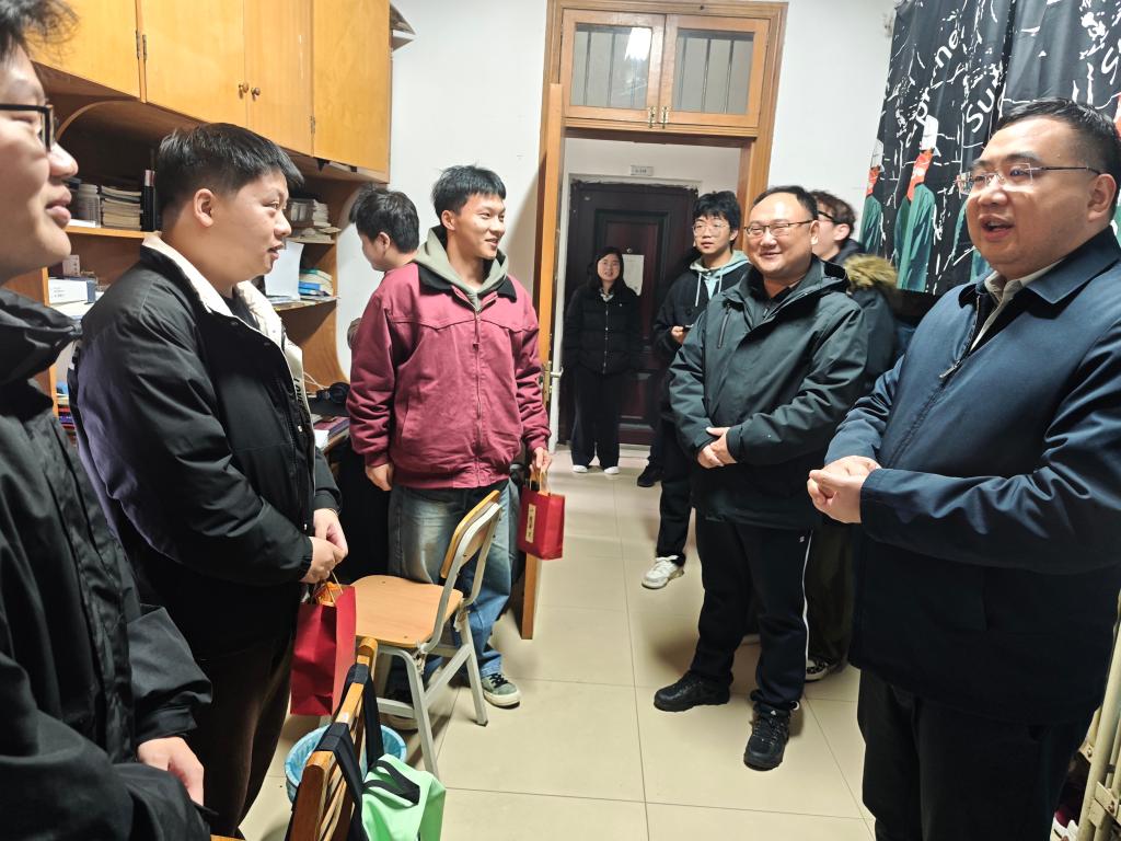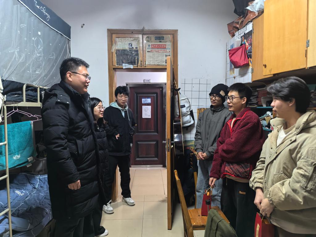 学院领导和老师深入学生寝室,详细了解同学们考研备考情况。“天气寒冷,要注意保暖”“备考冲刺的同时也要注意休息”,老师们亲切地询问考生们地备考进度、专业课程难题、时间规划等情况,鼓励大家保持积极心态,全力以赴迎接考试。