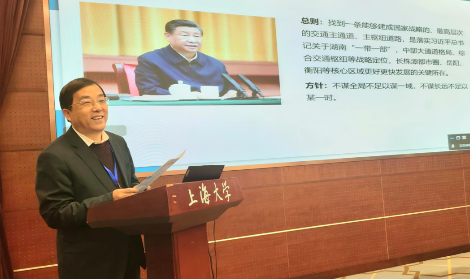 2025年1月18日,全国经济地理研究会区域交通经济专委会第二届学术研讨会在上海大学举行。研讨会主题是“创新驱动,协同融合,打造区域交通运输新质生产力”,主办单位是全国经济地理研究会区域交通经济专委会、上海大学。我院智能交通与现代物流研究院院长卢毅教授受邀参加会议,并做题为“以湘桂运河为契机,打造湖南西部陆海新通道湖南主通道、主枢纽”主旨报告。卢毅教授在所做的主旨报告主要内容如下: