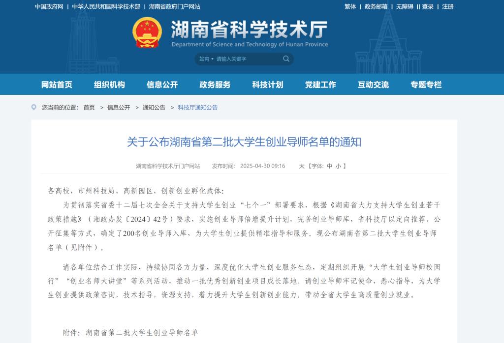 据悉,为贯彻落实省委十二届七次全会关于支持大学生创业“七个一”部署要求,根据《湖南省大力支持大学生创业若干政策措施》(湘政办发〔2024〕42号)要求,实施创业导师倍增提升计划,本次共有200名创业导师入库,为大学生创业提供精准指导和服务。