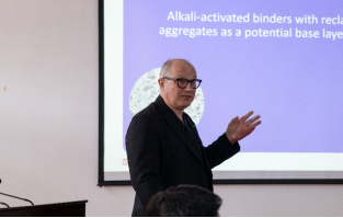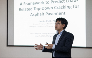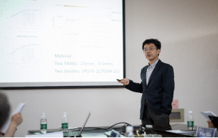 本次会议紧密围绕低环境影响道路材料与建造为主题展开讨论。比利时团队Cedric Vuye副教授介绍了降噪路面和尾气降解路面的材料研发技术与施工工艺,Johan Blom助理教授讲解了掺加地聚物的冷再生沥青路面材料路用性能评价,Zhi Cao助理教授探讨了基于可靠度分析的沥青路面环境效益评价方法。中方团队于华南教授介绍了一种防沥青路面结冰的有机硅改性聚脲涂层材料,葛冬冬教授讲解了橡胶改性沥青路面在寒区使用的施工工艺和路用性能,杨树副教授和顾凡教授分别探讨了沥青混凝土和沥青路面疲劳开裂的试验评价与数值建模分析方法。