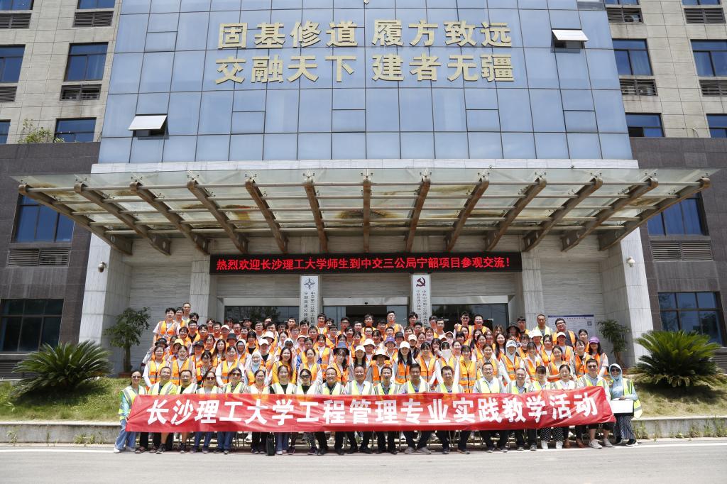 2021年7月14日,在工程管理系教师精心组织,中交三公局宁韶高速第一合同段项目经理部大力支持、热情接待和统筹安排下,参观了预制场、拌和场、项目经理部、驻地、试验室。项目经理部安排专家讲解团,带领师生深入了解施工场地总体布置、智慧化梁场建设、自动化智能设备应用、安全与质量管理措施,体验VR虚拟安全教育,观看企业宣传视频,了解中交三公局企业文化建设等。