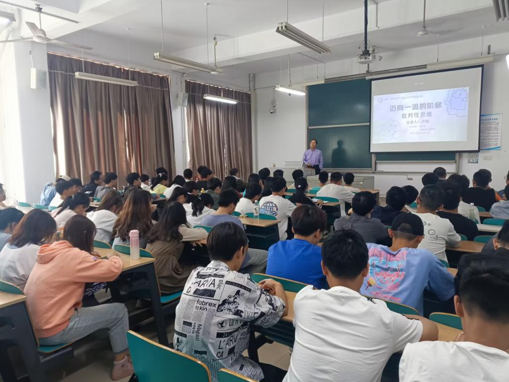 2022年10月18日下午2:00,学院在云塘校区工科三号楼A210教室举办了一场主题为“迈向一流的方法——批判性思维”的通识讲座,本次讲座由卢毅(博士生导师、教授)老师主讲,学校各个专业共次80多位学生参加了讲座。