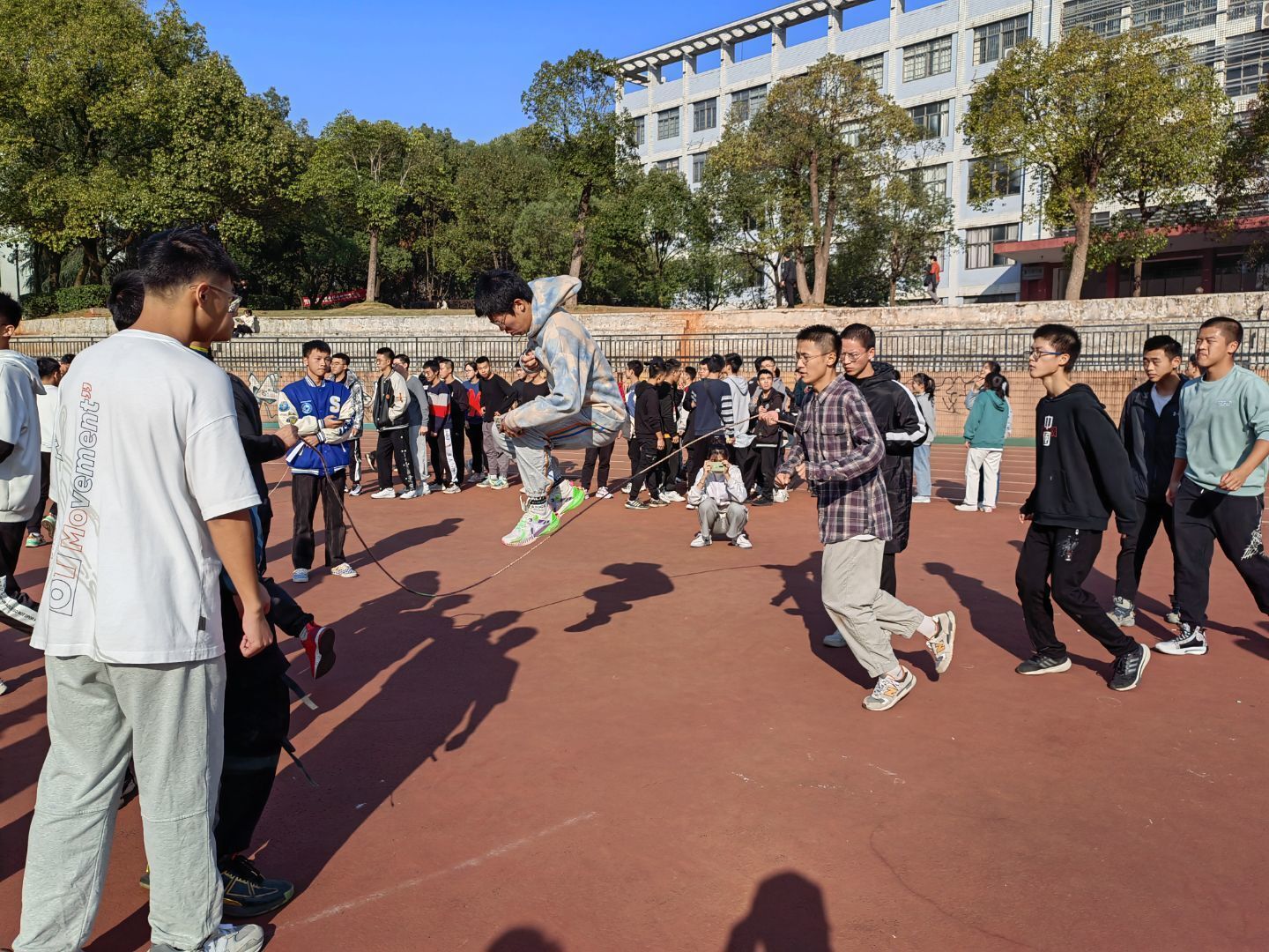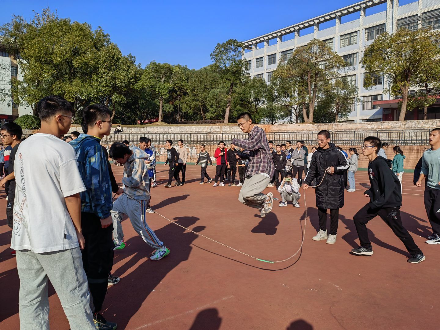 此次长绳比赛的顺利开展不仅丰富了同学们的校园生活,更起到了提高学生体质、增强班级凝聚力的作用,运动健儿们跳跃的身影在操场上留下了青春的印记,同时也展现了“不抱怨、埋头干、敢担当、勇争先”的交通青年精神,为建设体育强国献出自己的力量。