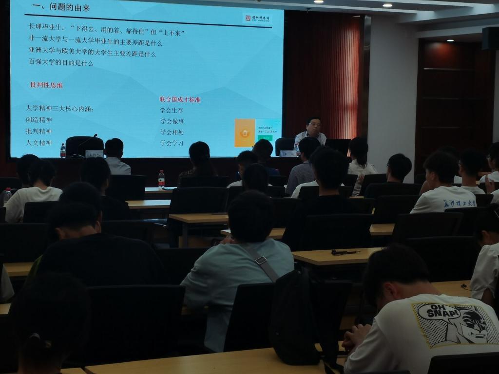 讲座伊始,卢毅讲述了批判性思维这一概念的由来,提出了批判性思维是未来核心素养的基础已是世界各国共识,最后解释了批判性思维落后的原因,并讲授了如何培养批判性思维。交运2002班于博远听完讲座后感言道:“此次讲座让我懂得了批判性思维的重要性,可以帮助我在步入社会后站稳脚步,明辨是非。”