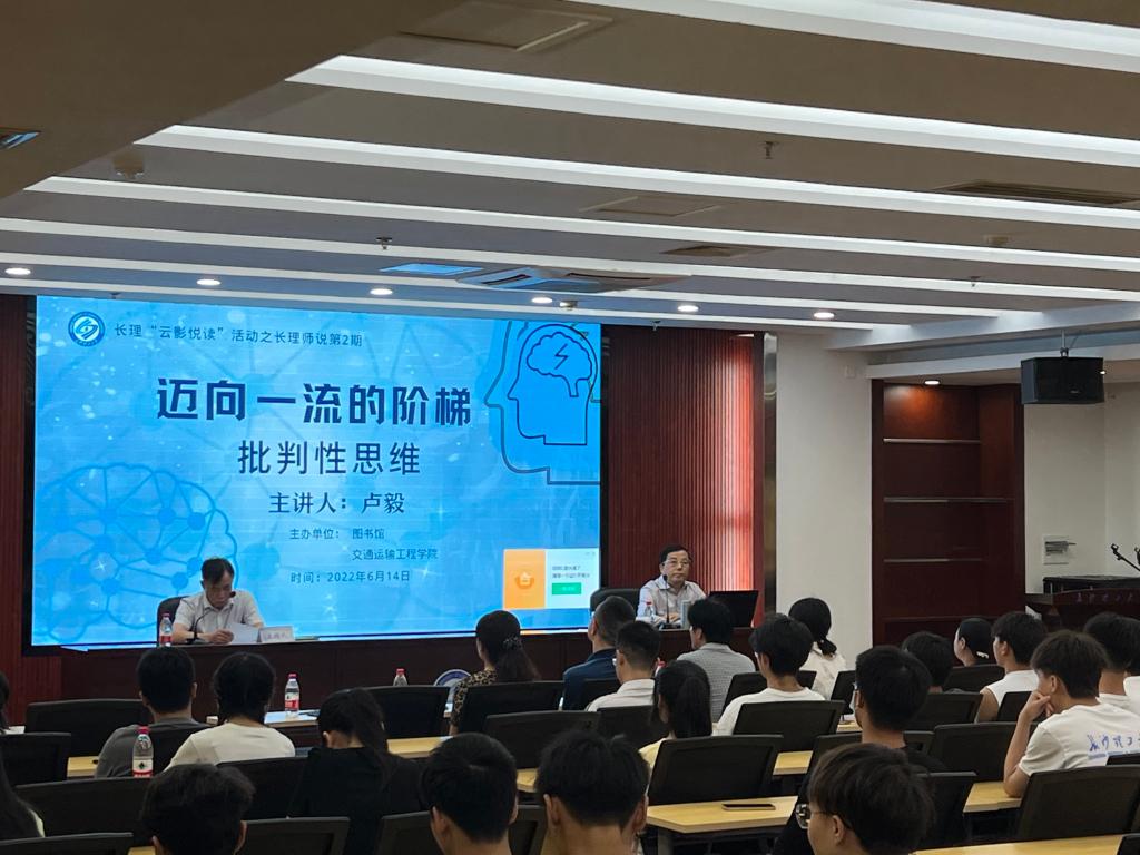6月14日下午,交通学院共计70余名学生参加了“迈向一流的阶梯—批判性思维”主题讲座。此次讲座由LETOU体育平台图书馆主办,同时也是长理“云影悦读”活动之长理师说的第二期,交通学院教授卢毅主讲。