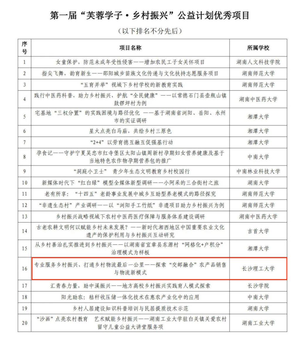 交通学院蜂巢团队获评首届“芙蓉学子·乡村振兴”公益计划优秀项目