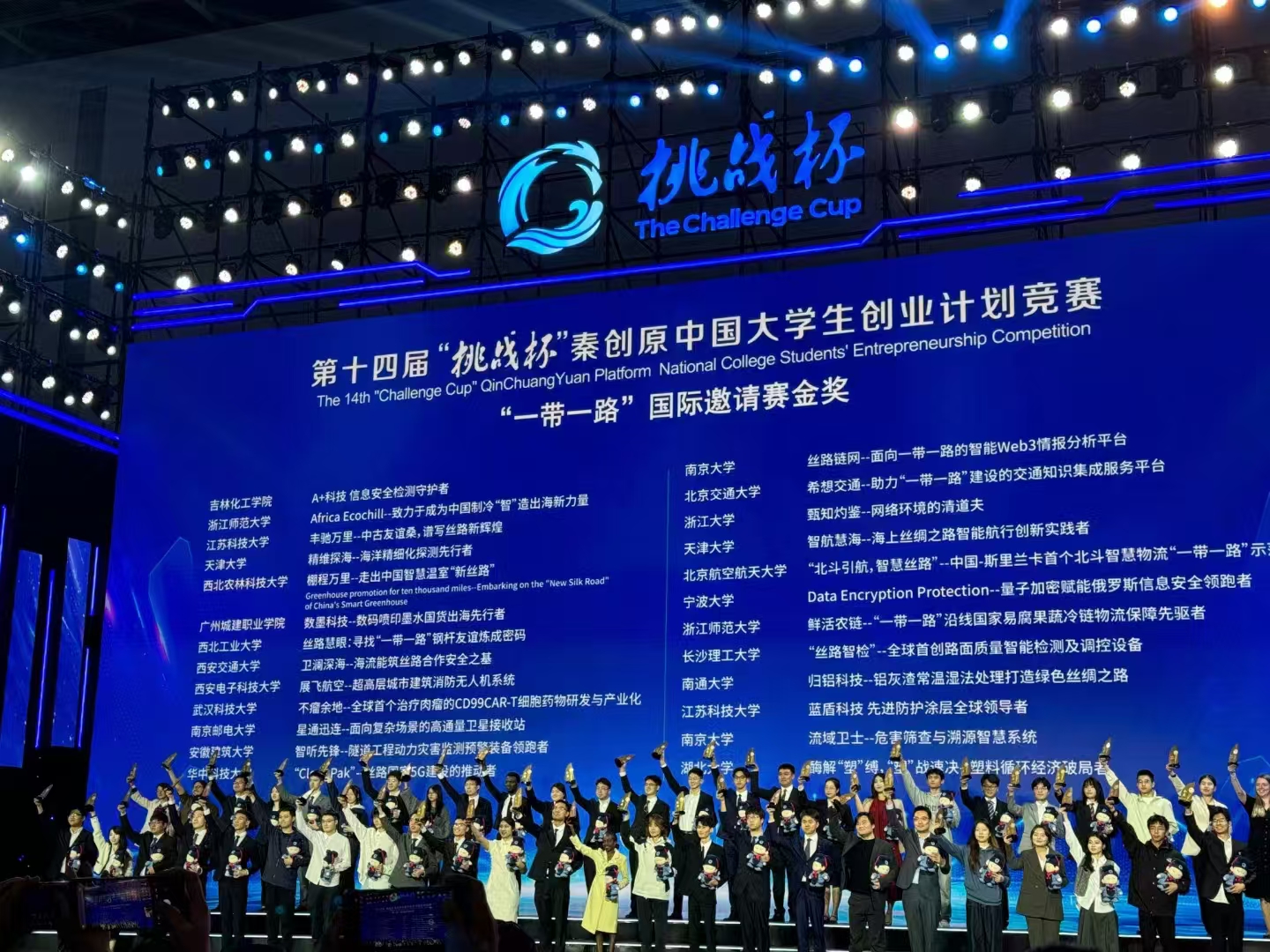 “丝路智检”科创团队创新路面质量智能检测及调控设备融合智能传感、大数据分析、自动调控技术,实现沥青路面实时检测、多维评价和智能调控,提出了力学-体积双指标控制体系,开发了压实质量智能检测装备,建立了压实质量智能调控方法,为沥青混合料压实质量智能化和精准化评判提供创新技术和装备。团队在决赛中凭借优异的项目展示和扎实的专业素养斩获“一带一路”国际邀请赛金奖,取得学院在“挑战杯”大赛中的历史性突破。