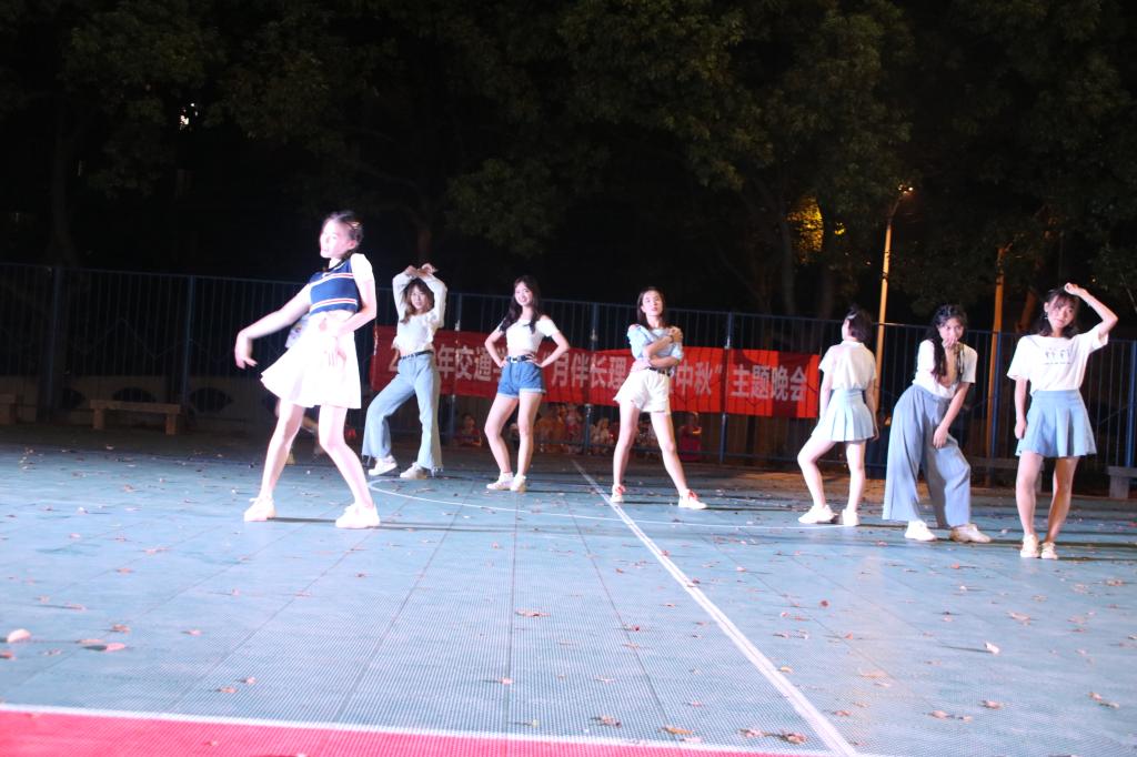 晚会前,交通学院为2019级新生发放月饼及饮品。晚会伊始,由各位下班带来歌曲《平凡之路》,他们借由这首歌希望2019级新生能在大学里找到自己前进的道路。随后,田上和彭笠为新生送上最真挚的中秋祝福。文工团声乐队带来《I have a dream》和《时间煮雨》。文工团舞蹈队的《夏日甜心》将整场晚会推向高潮。接着,学生会成员带来歌曲《飞云之下》。晚会中的互动环节“飞七令”和“听歌识曲”深受同学们的喜爱。
