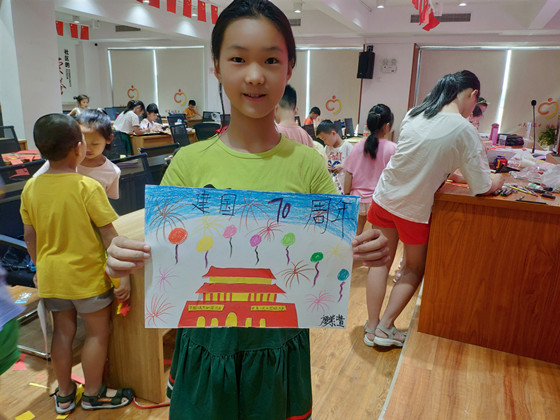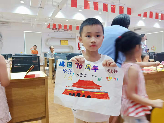 上午,社区老师米娅为孩子们带来巧手绘中华,新中国成立70周年主题绘画。正式绘画之前,孩子们认真聆听米娅讲述建国纪念日的由来,并因此对新中国前有了更多的认识。随着米娅一步一步的绘画教学,孩子们最终将北京天安门完整地展现在了自己的画纸上。