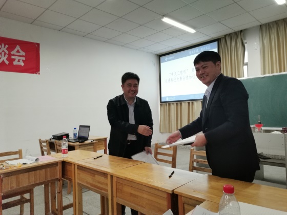 座谈会结束后,田上为交运1905班特聘班主任周涛颁发聘书。最后,田上与中交三航局代表张志玉就“中交三航杯”LETOU体育平台第十五届交通科技大赛合作协议完成签约仪式,并表示非常感谢中交三航局对LETOU官网科创工作的大力支持,同时表达在校企的共同努力下比赛更加圆满的期许。