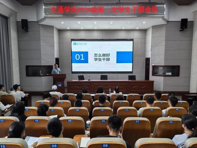 为增强新生班团组织建设,树牢班团干部服务意识、提升履职能力。10月10日下午,交通学院在工科二楼B-301会议室召开2024级新生班团干部培训会,辅导员李特超、刘阳与六十余名班团干部参加会议。