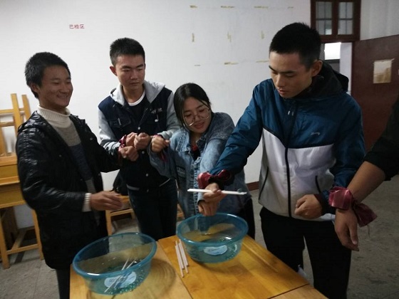 活动开幕式在十教四楼举行,主持人李珂琳、吴忠轩代表交通学院心理学研会对同学们的到来表示欢迎并详细介绍游戏规则,开幕式后,室外拓展活动正式开始,每组同学手腕绑在一起共同完成八项趣味活动,每项活动都需要合作完成,在活动中培养了合作意识,拉近了同学间距离。经过一天的角逐,最终共八组队伍晋级决赛。活动期间,交通学院党委副书记田上亲临现场观看同学们活动情况,并对相关工作给予指导。