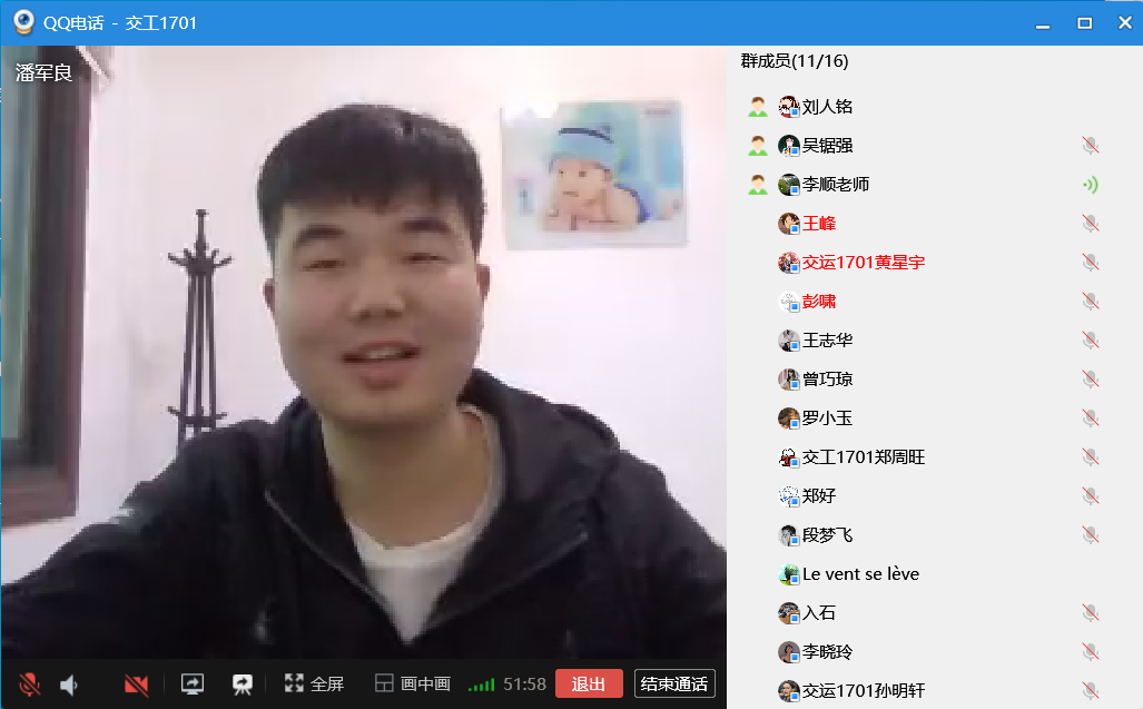 3月16日,交工1701班通过群视频举行了“同心战疫,规划学习”线上主题班会。通过这次学习,大家对疫情有了正确的心态,也对未来的学习有了一个清晰的规划。