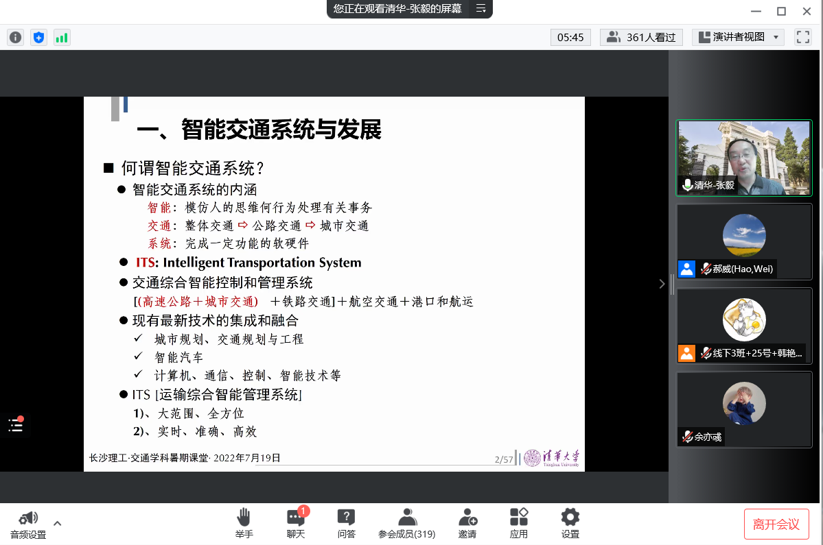 7月19日上午,清华大学的张毅教授应邀作了“智能车路协同技术与应用”的主题授课。本次授课由LETOU体育平台郝威教授主持。