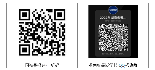 3.报名方式:扫描问卷星二维码进行在线报名。同时,为了提供更好的咨询服务,请有意申报的同学扫码入湖南省暑期学校QQ咨询群: