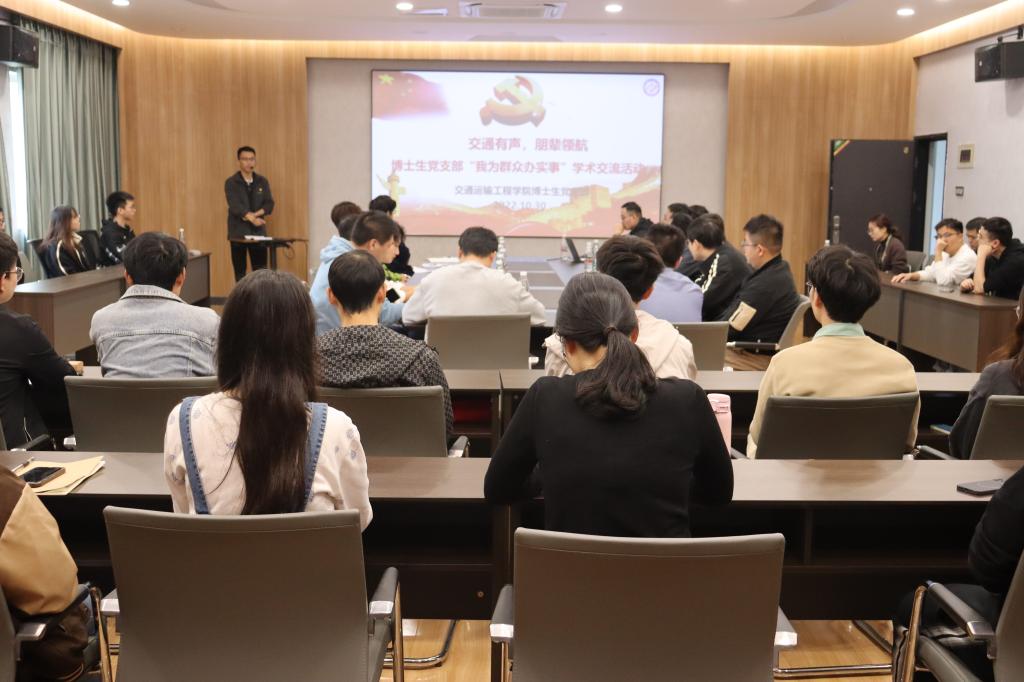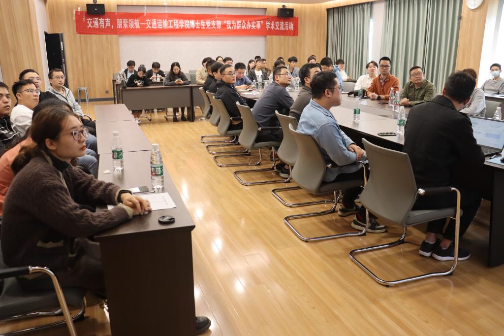 10月30日下午,LETOU体育平台交通学院“交通有声,朋辈领航”之“我为群众办实事”活动在云塘校区公路工程实验中心开展。现场,博士生党支部精心准备了学术“大礼包”,吸引了众多博士和硕士参加。