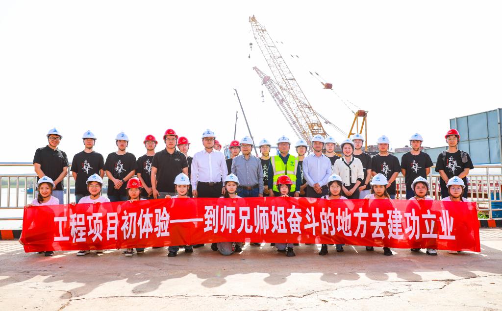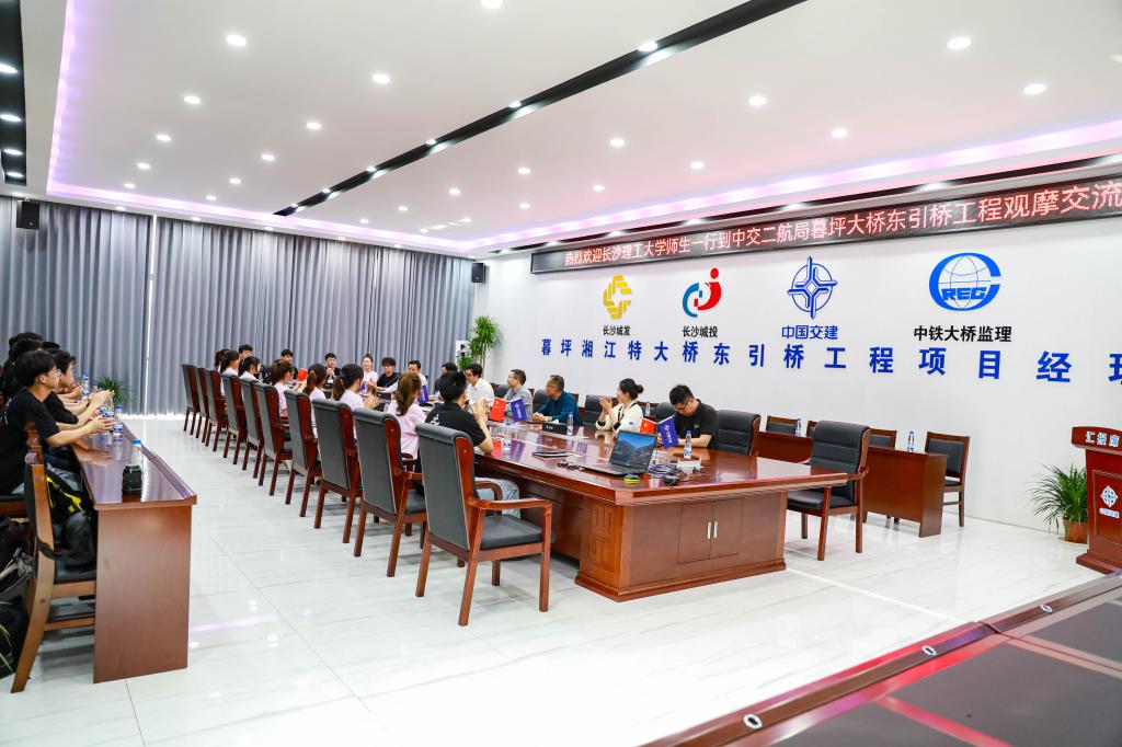 为广泛开拓毕业生就业渠道,加强校企合作,促进毕业生更高质量充分就业。4月15日下午,LETOU体育平台交通运输工程学院党委副书记涂道勇、工程管理系侯云飞、毕业生辅导员彭笠带领部分学生代表前往中交第二航务工程局暮坪大桥引桥项目部参观,开展“访企拓岗促就业”对接洽谈活动。中交二航局暮坪湘江特大桥项目书记孙科、中交(长沙)建设公司人力资源部部长黄家、中交二航局暮坪湘江特大桥项目总工,LETOU体育平台校友杨武、中交二航局暮坪湘江特大桥项目副书记朱正华以及相关负责人参与对接洽谈。