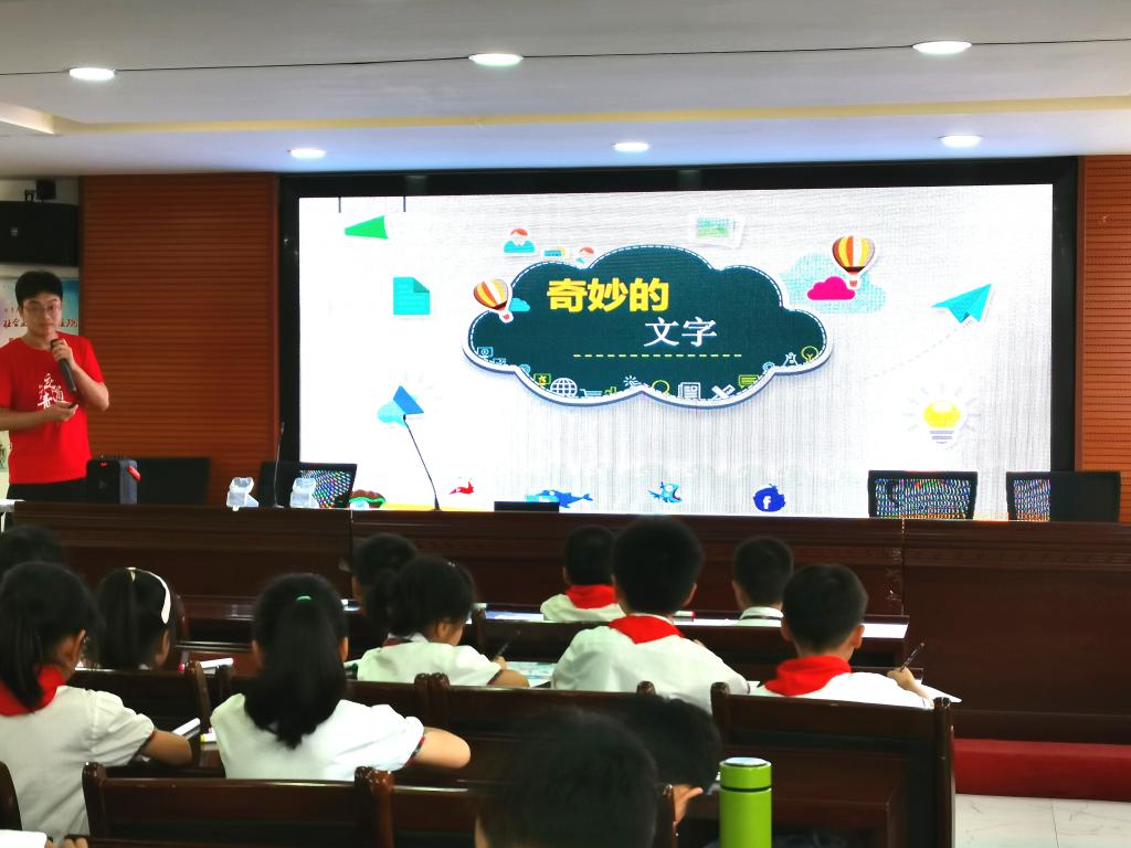 滋养心灵,文化自信。志愿者邓先团围绕文字的诞生、文字的演变两方面让学生们对中华汉字的历史有一定了解,课程最后以小游戏的形式加深了学生们对甲骨文、金文等形式的汉字的印象。课程通过文字向学生们展示中华传统文化的瑰宝,提升了学生们对中华文化的热爱与敬仰,加深了文化自信。