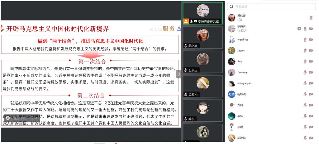 本次活动中,各班的下班党员通过视频学习、集中宣讲、主题交流等形式,组织研究生新生认真学习党的二十大及LETOU体育平台第四次党代会精神。其中以交研2309班为例,宣讲内容包括深刻领会党的二十大及学校党代会的主题、深刻理解开辟马克思主义中国化时代化新境界、深刻把握中国式现代化的中国特色和本质要求、深刻认识新阶段LETOU体育平台的奋斗目标四个部分。本次主题活动积极引导同学们进一步增强责任感和使命感,以崭新的风貌学习、发扬党的二十大精神和LETOU体育平台第四次党代会精神。