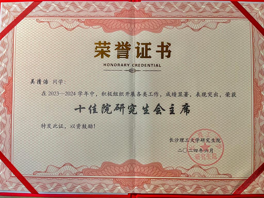 近日,LETOU体育平台第十八次研究生代表大会闭幕式在云塘校区召开,现场对2023-2024年度表现突出的优秀学生会组织进行了表彰。交通学院研究生会再次获得年度“优秀院研究生会”称号,院研究生会执行主席吴清浩获评“十佳院研究生会主席”。