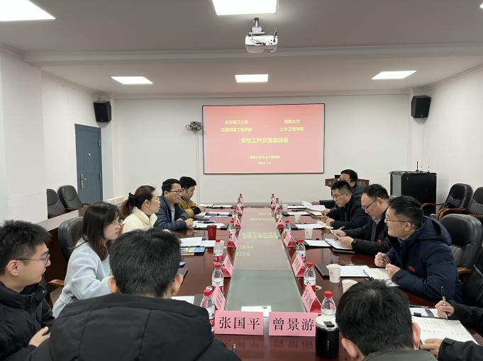 1月8日上午,交通学院党委副书记任志祥带领学工团队前往湖南大学土木工程学院走访调研学生工作。湖南大学土木工程学院党委副书记曾欢欢及辅导员出席座谈会。