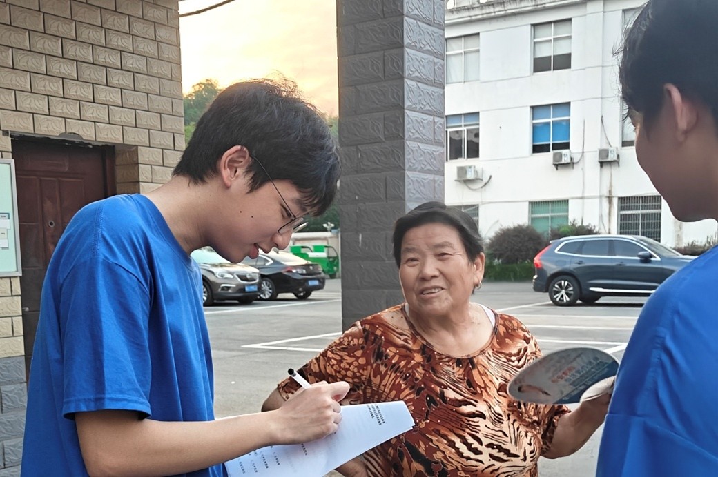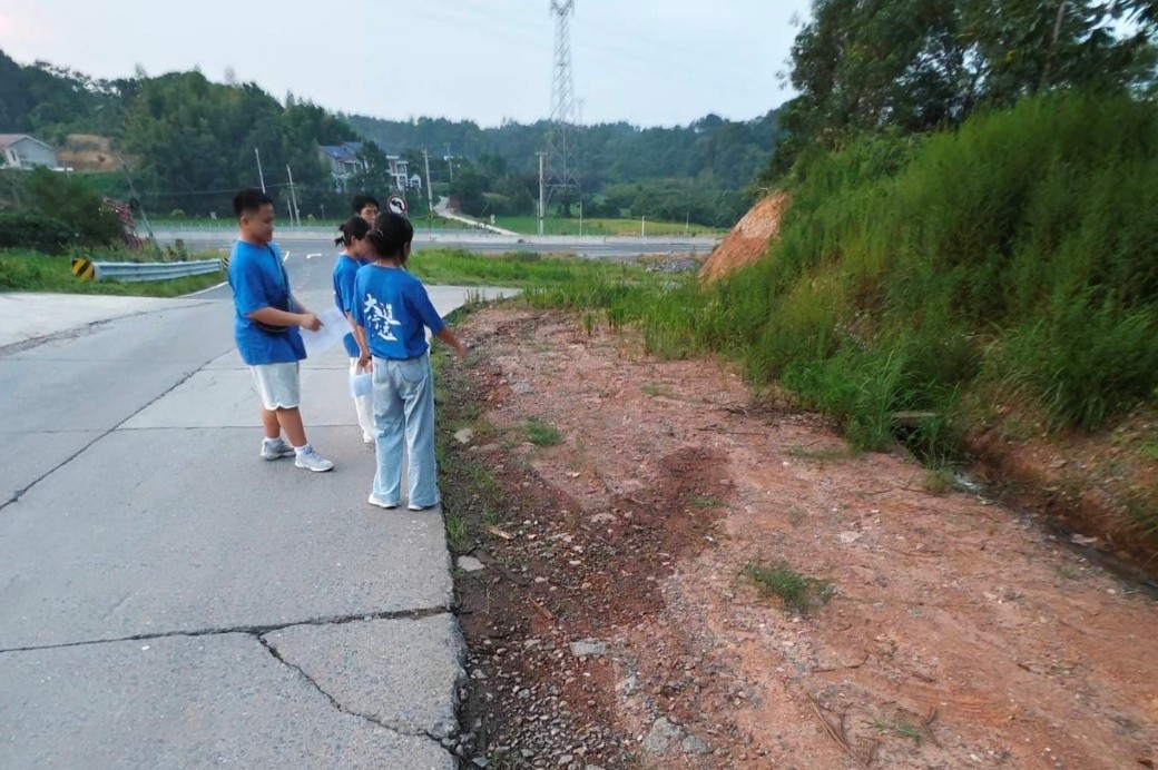 调研过程中,实践团成员身着统一服装,沿着新南路走访,针对农村道路实际情况,重点查看道路平整度、排水设施及周边环境。同时,团队耐心向村民说明来意,引导村民填写《桃源县农村道路病害调查问卷》,针对路面破损程度、积水频率、通行安全等问题逐一询问,全面收集一手资料。