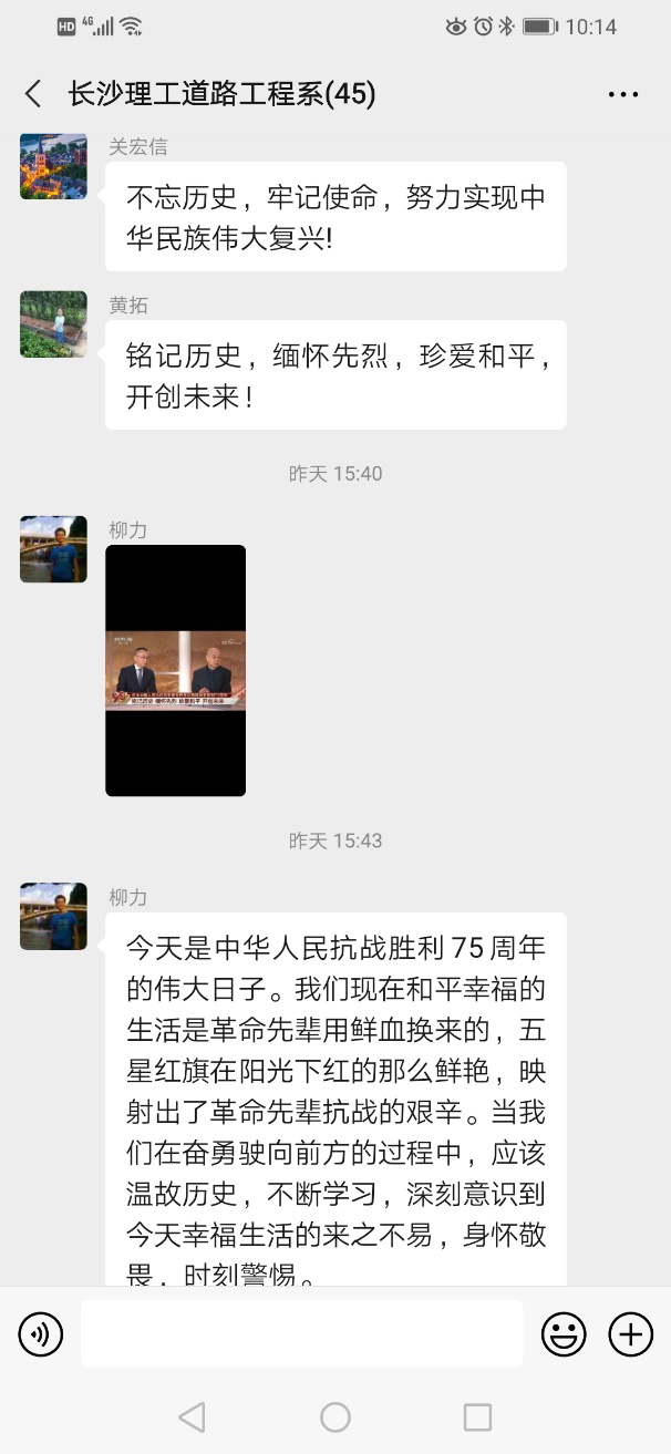 2020年9月3日是中国人民抗日战争暨反法西斯战争胜利75周年,为回顾那段浴血奋战、救亡图存的不屈岁月,激发党员爱党爱国热情,不忘初心使命,道路工程系党支部组织全体党员教师观看抗日战争暨世界反法西斯战争胜利75周年纪念活动。
