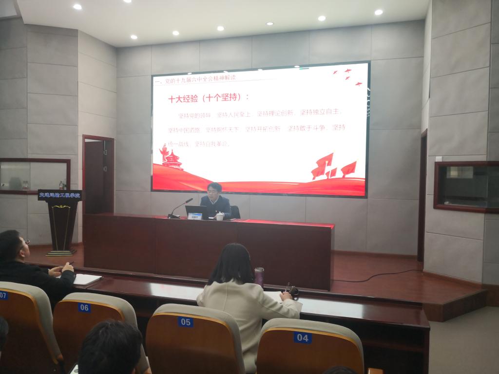 1月4日下午,副校长钱国平在工科二号楼B-301报告厅为交通学院、食品与生物工程教师宣讲党的十九届六中全会精神和湖南省第十二次党代会精神。交通学院党委书记孔伟红主持会议。