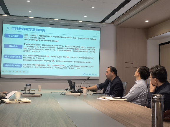 在前期对审核评估基本问题学习的基础上,王正武委员以学校如何进行学术型人才培养为核心,详细介绍了学校人才培养的特点、支撑依据等具体内容。进一步向大家讲解了学校的“三全育人”工作格局如何建设,如何落实“以本为本”和“四个回归”的情况,以及学校人才培养方案中的特色等情况。同时,从学生和教师两方面,分别介绍了学校如何提高学生综合素质和创新素养以及如何提升教师教书育人能力和水平的举措。