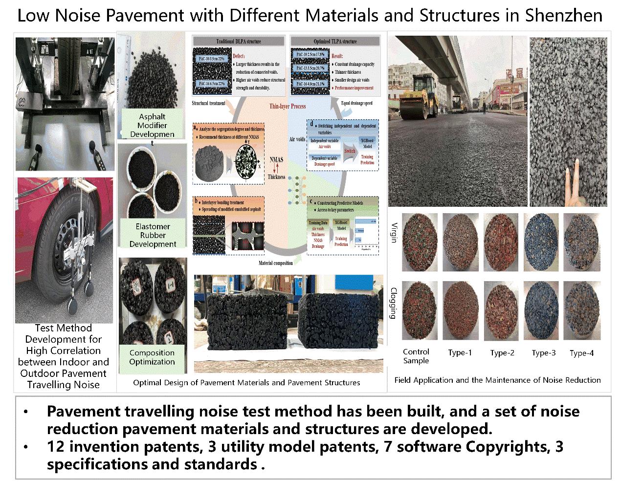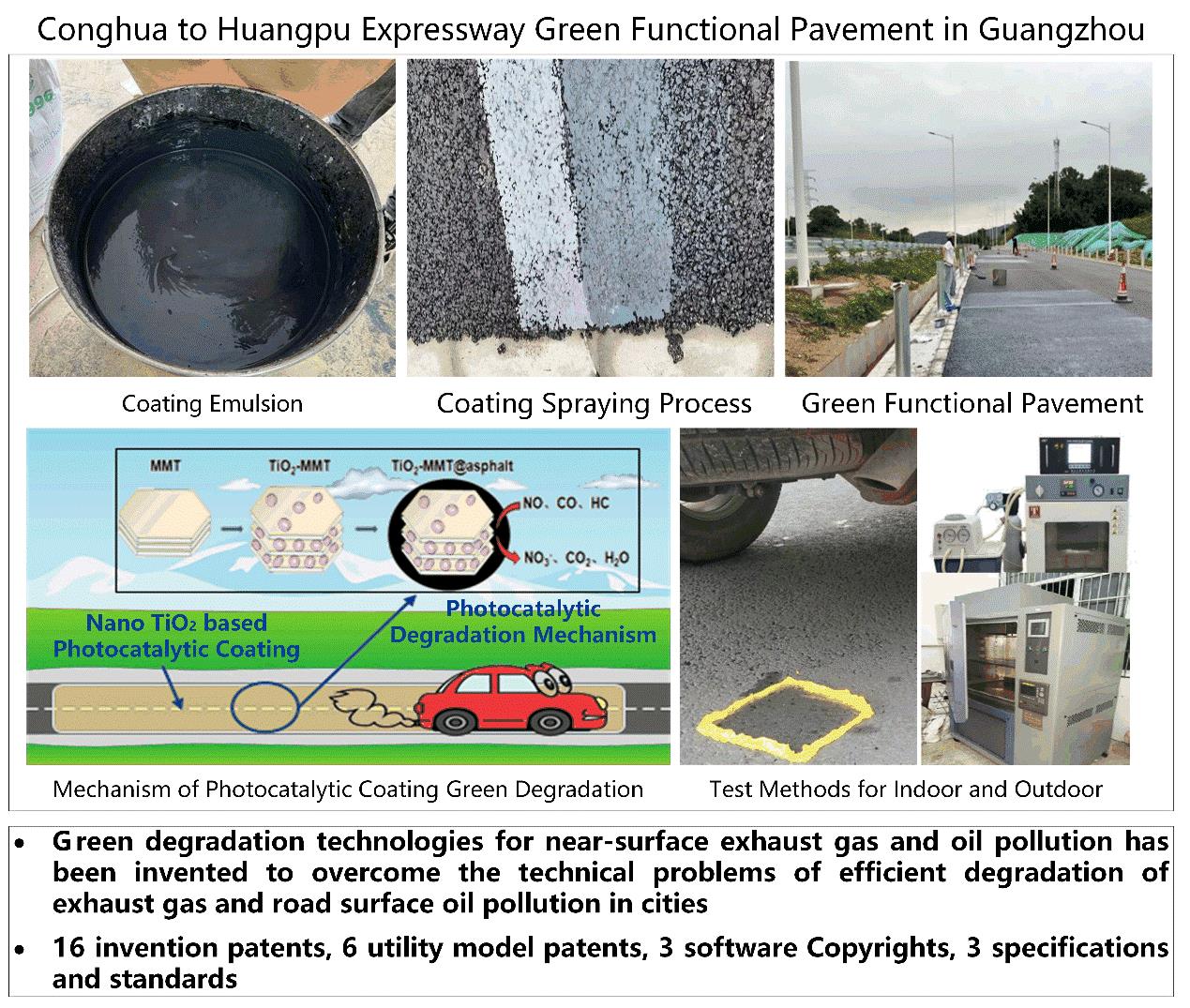 In order to integrate the common needs of transportation development and environmental protection, the project team has conducted research on the low-carbon design and application technology of functional pavement materials since 2008 with funding of major scientific research projects and key engineering projects.