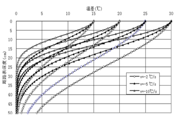 图5 不同环境条件下相关路面温度随深度变化情况