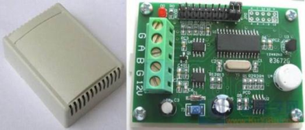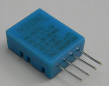 用于监测车厢环境的湿度传感器最大可测量湿度应该高于80%,项目组选用DHT11湿度传感器设计了湿度传感器子模块。DHT11是一款内含已校准的温度与湿度敏感元件的复合数字传感器,DHT11的实物如图3-3所示,其封装形式为单排4引脚封装,采用单线制串行接口,能够进行双向数据通信。最终设计的DHT11与ATMEGA88通信电路如图3-4所示。