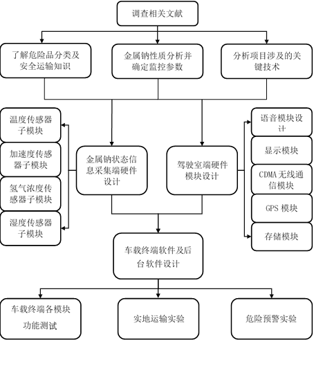 在此基础上,项目组将完成各模块功能测试与实地运输实验,并设计危险预警实验,以检验系统的可操作性。通过该系统的建立,旨在提高金属钠的运输效率和安全性,进而推广应用至其他危险品道路运输中。