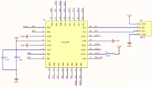 图3-5 MMA7361实物图 图3-6 MMA7361与Atmege88通信电路图