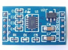 车辆在一般路面上行驶时,振动加速度一般不超过1g,在通过减速带和凸块时,振动加速度可能达到38,因此,加速度传感器量程应超过3g。项目组利用飞思卡尔公司的MMA7361加速度传感芯片设计了加速度传感器子模块。其实物图如图3-5所示,本设计采取5V供电。最终设计的Atmega88与MMA7361模块通信电路如图3-6所示。