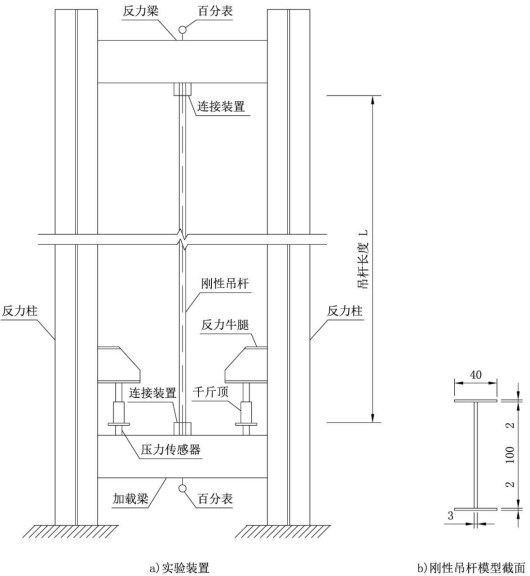 ③利用实验系统中的压力传感器测得的力值加上实测的部分实验装置自重,得到刚性吊杆上的实测拉力值,并利用百分表测得的位移对实测拉力值进行校核和验证。