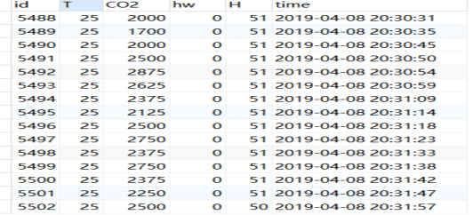 主控芯片接收所有传感器传输来的数据并处理,判断人体是否存在,温度是否过高,二氧化碳浓度是否过高,并将分析后的数据通过通信模块传输到数据库,用户APP联网调取数据库数据并进行处理分析整合。在云服务器建立本项目的数据库,主控模块将各传感器采集到的数据进行处理后,通过通信模块发送到云服务器,存储在云数据库中,详见图3。