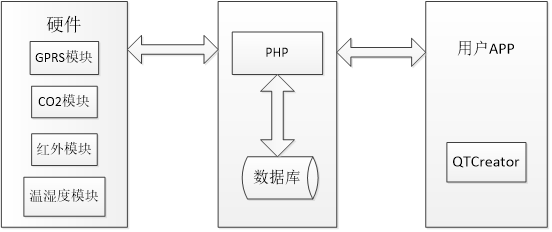 在开发中,将本系统划分为硬件部分,用户APP部分以及云服务器部分。其中硬件部分包含了感知层,控制层和传输层的功能,在主控芯片STM32F103C8T6的控制下,各传感器收集采集到的数据并经过处理后通过GPRS模块传输到云服务器数据层。APP从数据库获取数据并展示给用户。主要技术包括: