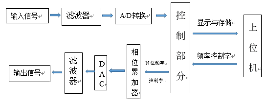 2) 信号输出:利用DDS波形发生技术,由上位机发送频率控制字到FPGA,再传送到相位累加器,然后通过DAC输出滤波后的信号;