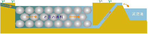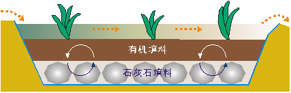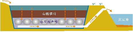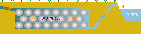 (2)将处理浅层地下水的渗透反应墙的技术引入废水治理,结合封闭式石灰石充填床和表流湿地系统,分级处理废水。并采用天然材料和固体废料为原料,充分体现治理技术的生态性、经济性和可推广性;