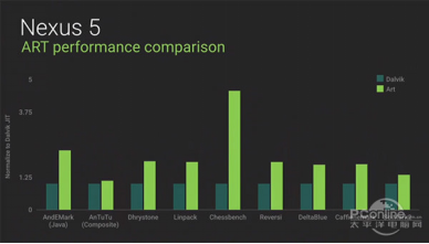 图5 Nexus5上ART模式与Dalvik模式效率对比