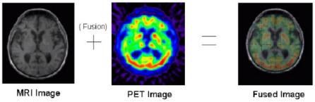 在民用领域,在医学图像分析、安全导航、交通检测等方面都有着重大的应用价值。如图2所示,在医学图像分析上,通过将MRI与PET扫描图像进行融合,可以更好地辅助医生对患者情况做出判断。除此之外,在日常生活中,图像融合还可用于无缝添加原图像所缺失的内容,或通过融合技术进行艺术的在创作,营造出普通摄影无法表达的意境。
