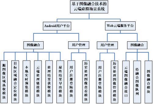 我们开发的基于图像融合技术的云端真实场景重现系统主要分为Android与Web云服务器两个部分: