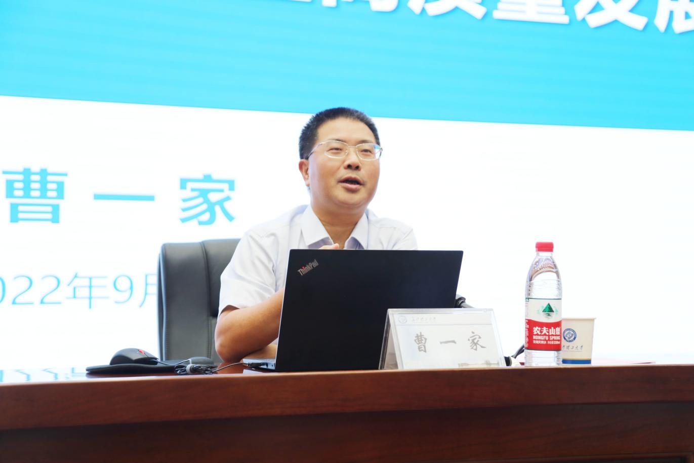 针对这些挑战,曹校长从专业定位、课程体系、师资队伍、教学资源、学风建设五大方面,提出了系列教育教学改革举措。曹校长指出,要把准专业定位,抓住传统专业改造升级的新机遇;要遵循课程“四性原则”,启动“名师引领”前沿课堂计划;要继续坚持推进“青年教师教学能力提升计划”,提升青年教师的独立科研和独立教学能力,“要让青年教师走上正确的充满阳光的学术和教学并举道路”;要进一步改善教学资源条件,整合教学资源使用。最后,曹校长对国家级一流专业的建设内涵进行了诠释,进一步强调了“十个一流”建设标准。